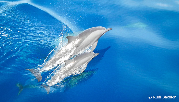 There are many species of whale and dolphin living within the park, but our most regular encounters are with the Long Nosed Spinner Dolphin, the Common Dolphin, and sometimes we can find a 20 strong pod of Pilot Whales. When we find the dolphins, they often swim along side our boat, playing underneath the bow, and the Spinner Dolphins live up to their name and can be seen jumping out of the water, performing aerial acrobatics.